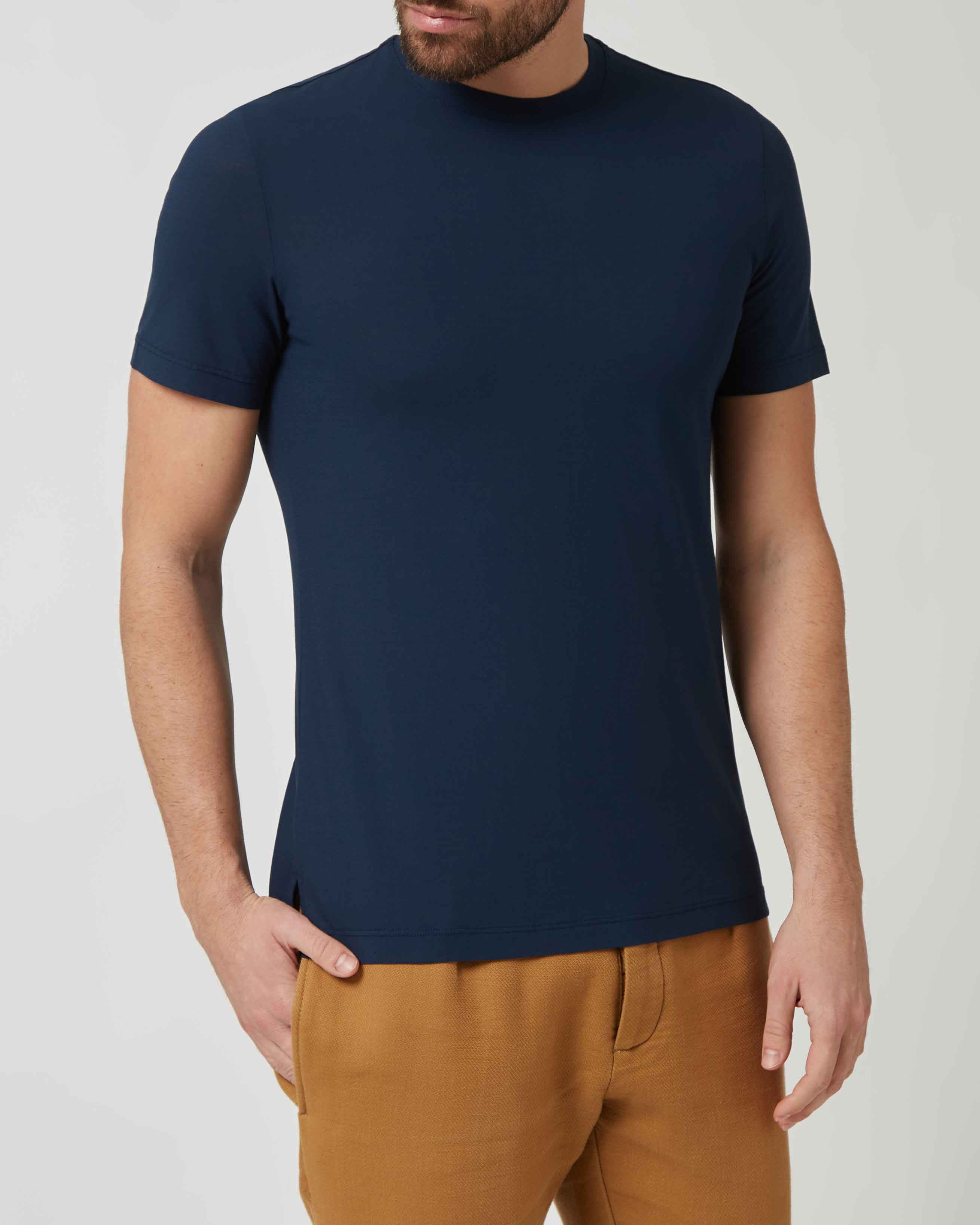Nos T-Shirts sont fabriqués par des artisans italiens qualifiés, en utilisant les meilleurs fils de coton du monde, travaillés en double torsion, pour créer des vêtements essentiels, élégants et exclusifs.